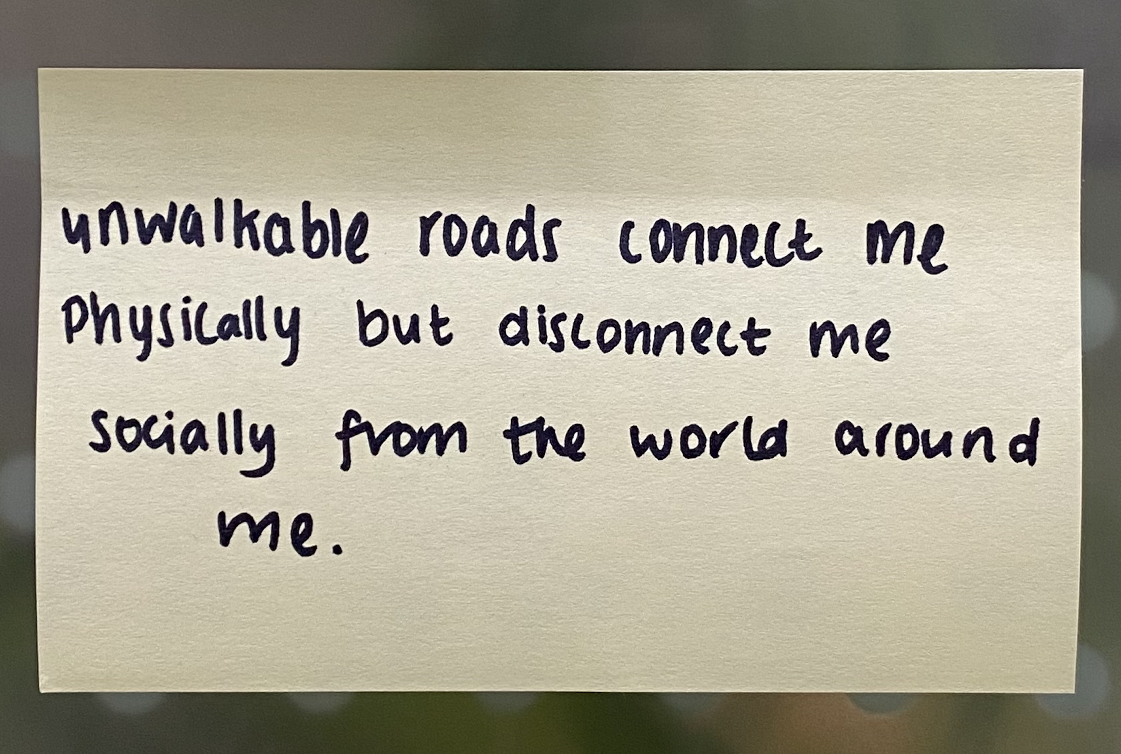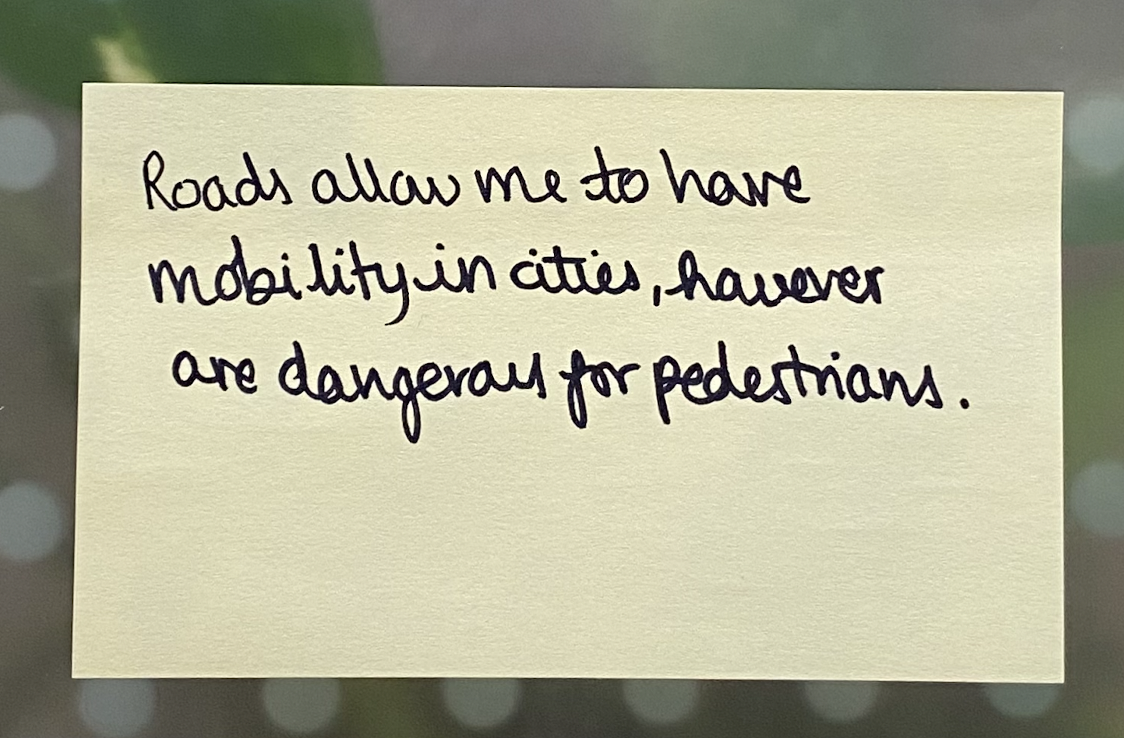 The exhibition featured an interactive element where viewers were invited to share their thoughts and feelings towards roads. Here is what we found: